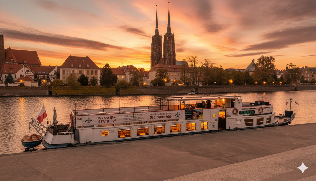 Wspominaj bliskich w wyjątkowy sposób. 45-minutowy rejs statkiem przez centrum Wrocławia – ciepły pokład, gorące napoje i chwila wytchnienia.